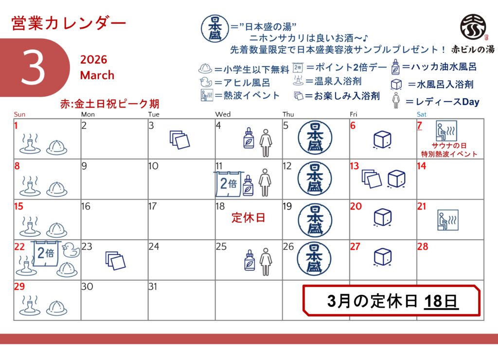 3月の定休日は18日です。